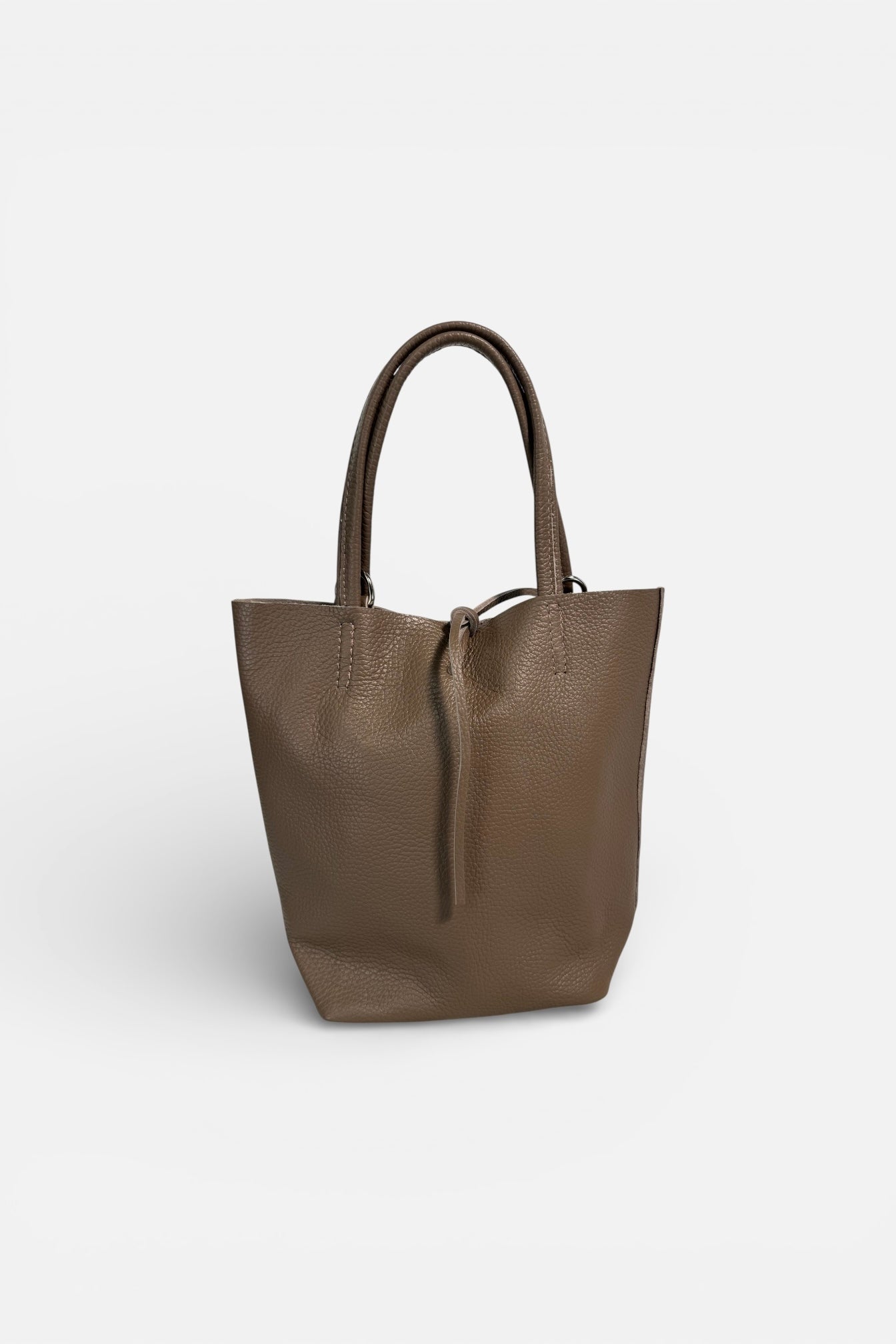 Deze leren mini shopper heeft een touwsluiting en komt met een afneembaar en verstelbaar lang hengsel om ook als crossbodytas te kunnen dragen.