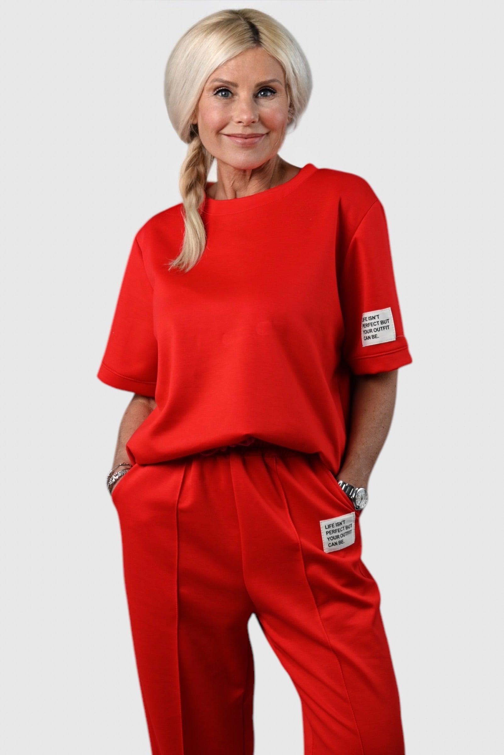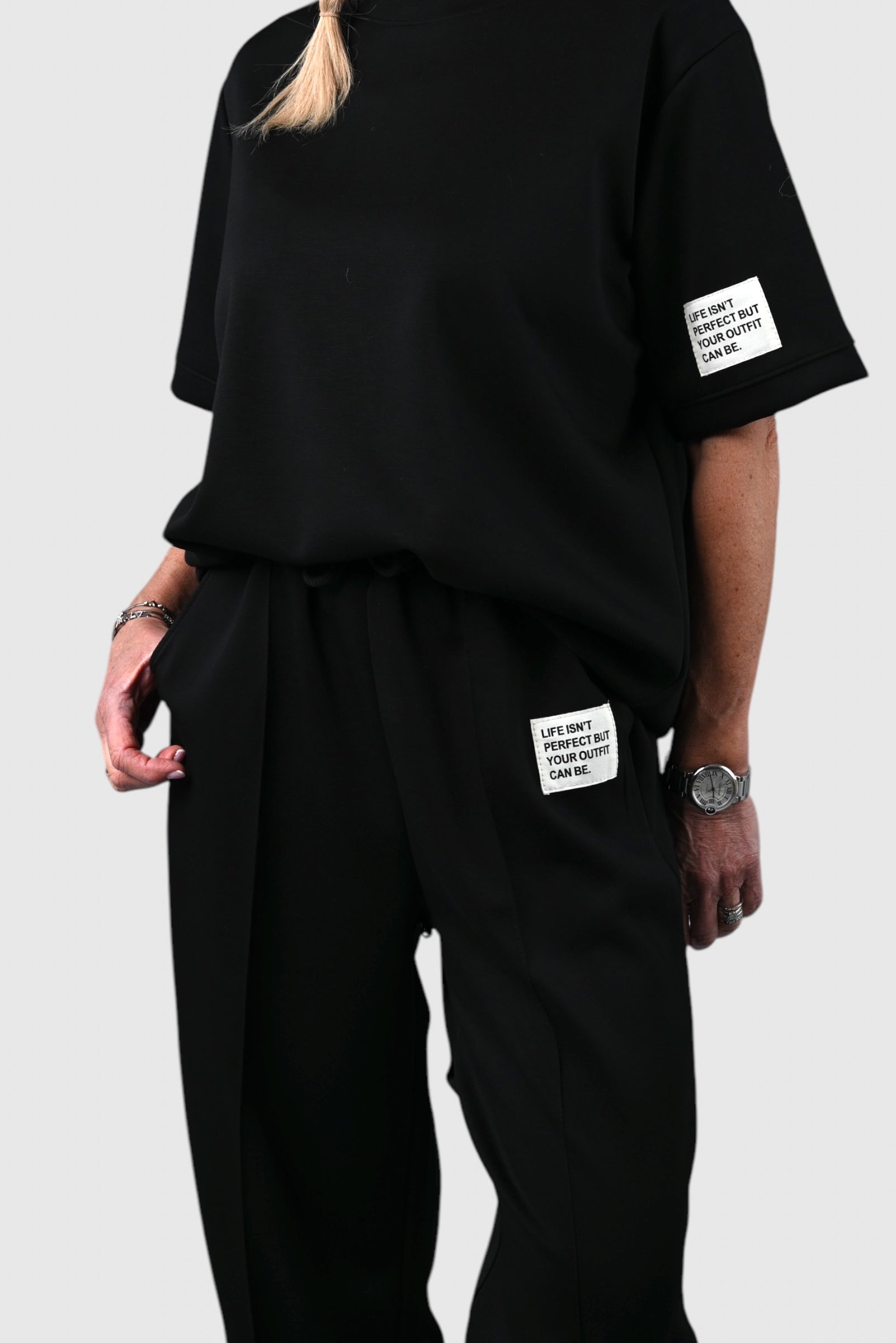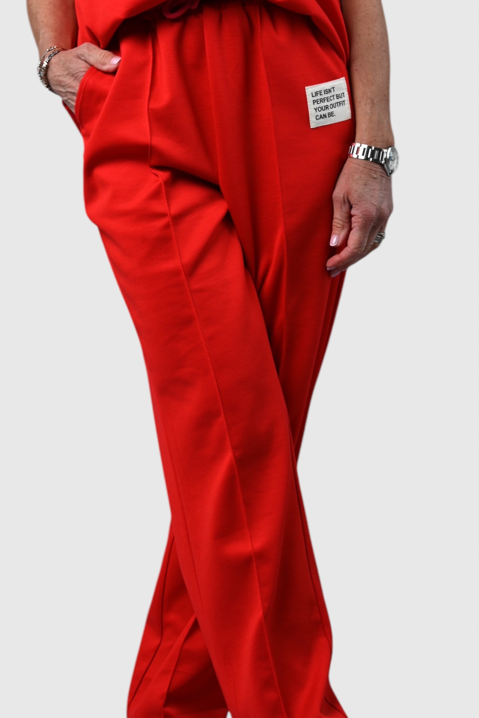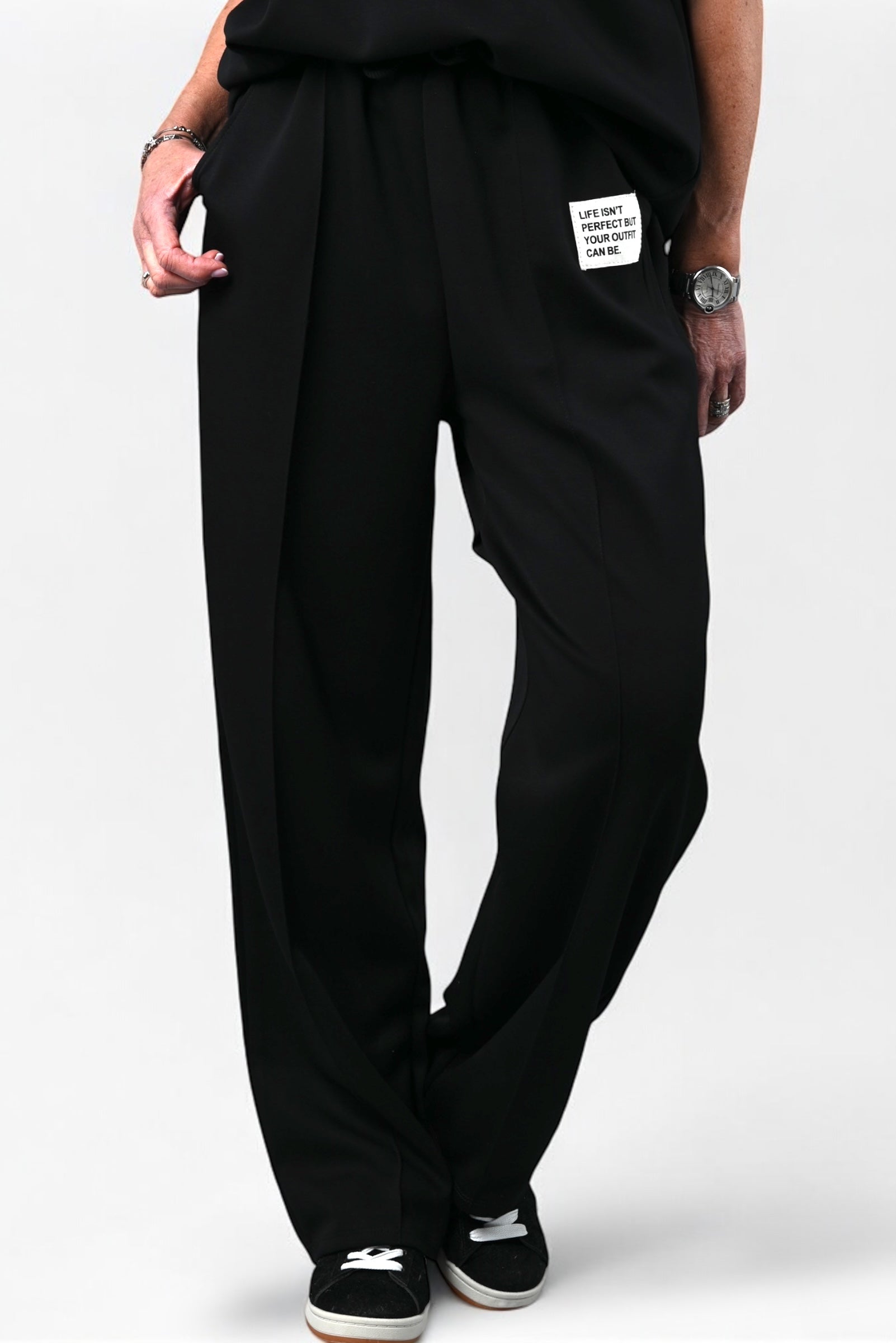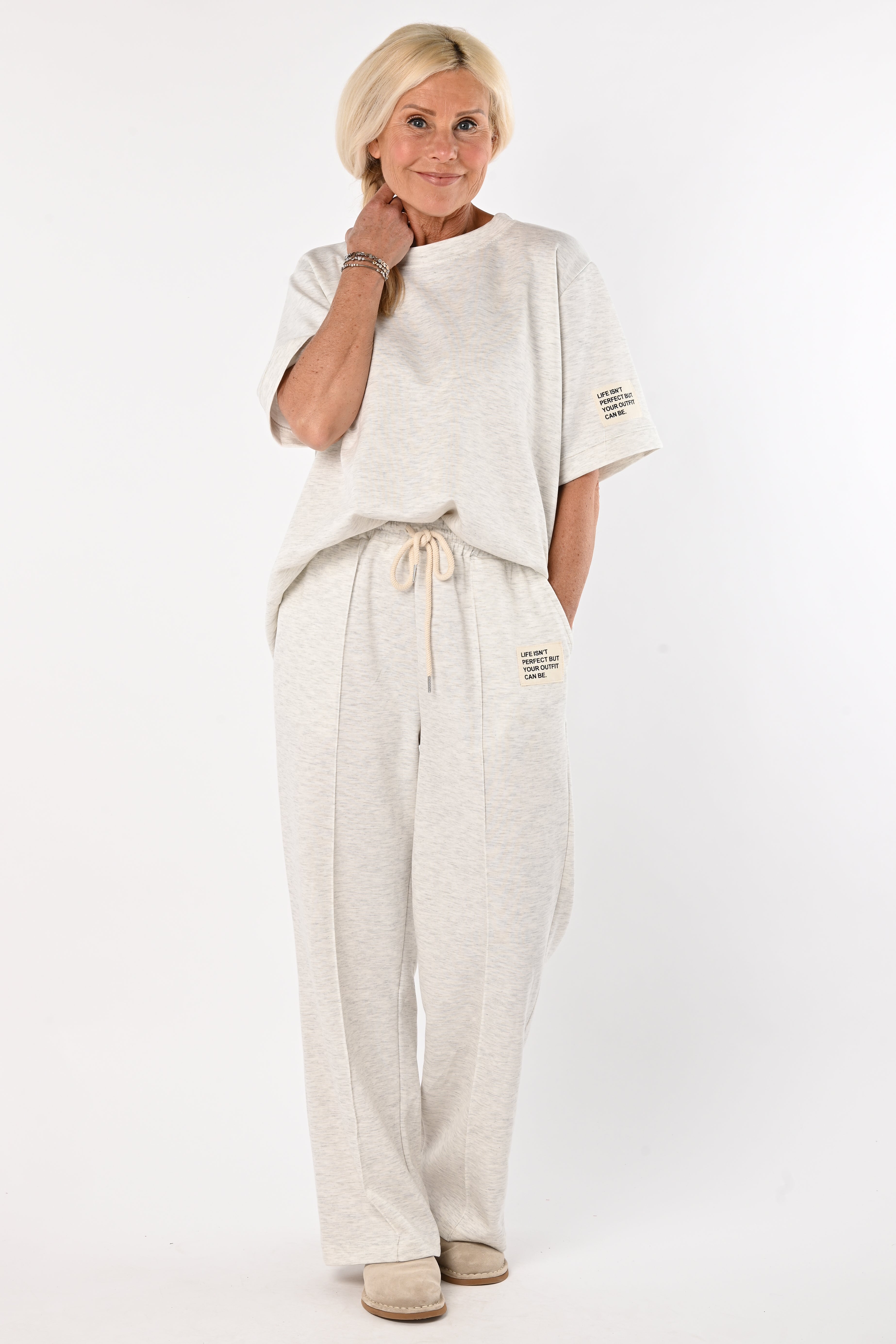 - Pantalon met elastische taille en koord sluiting