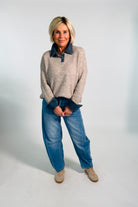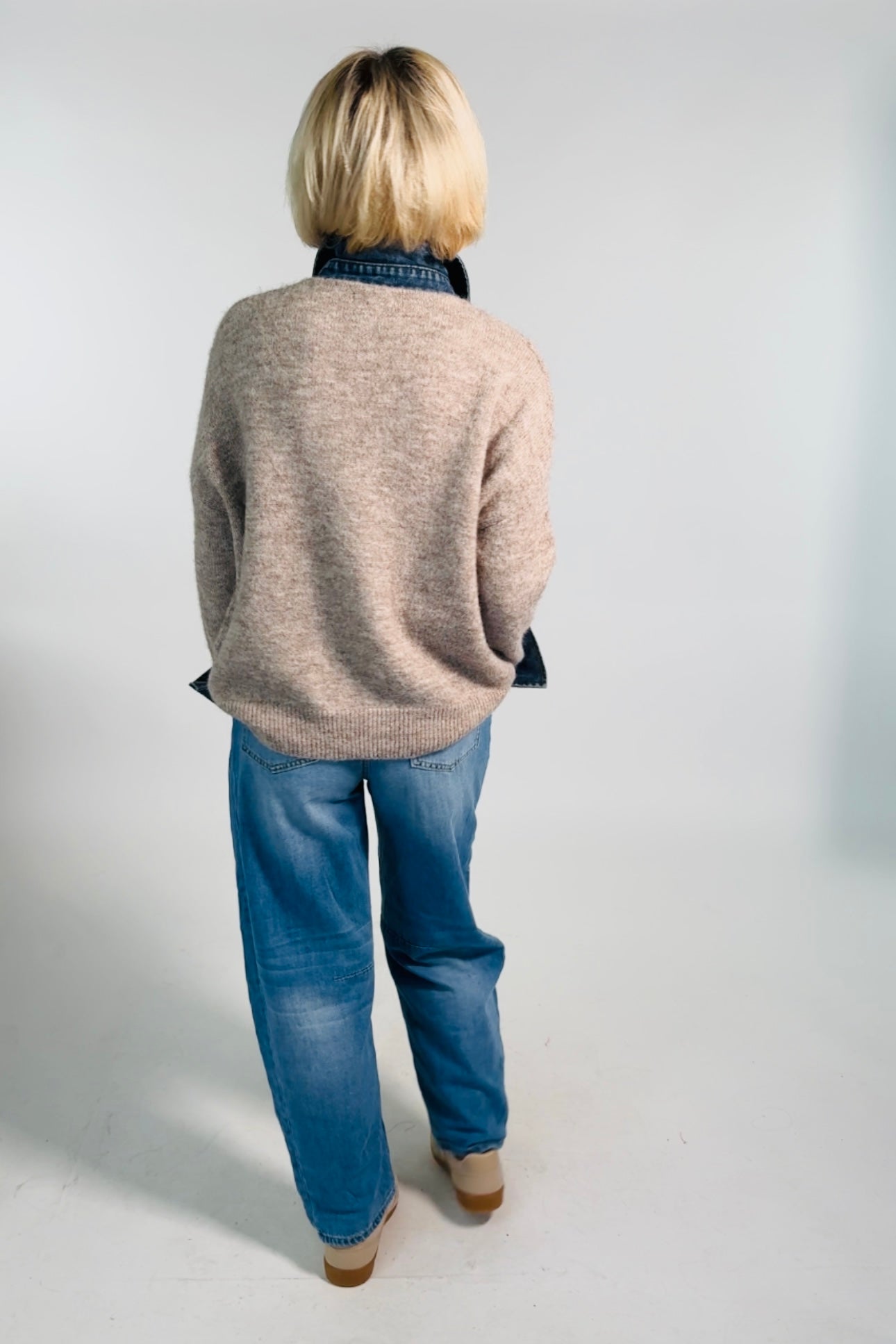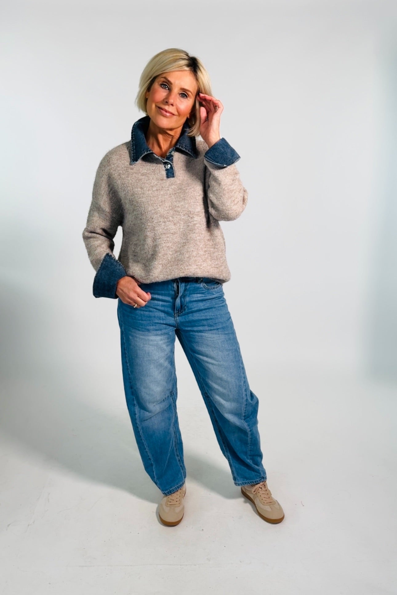 - Fijn gebreide trui met jeans boord