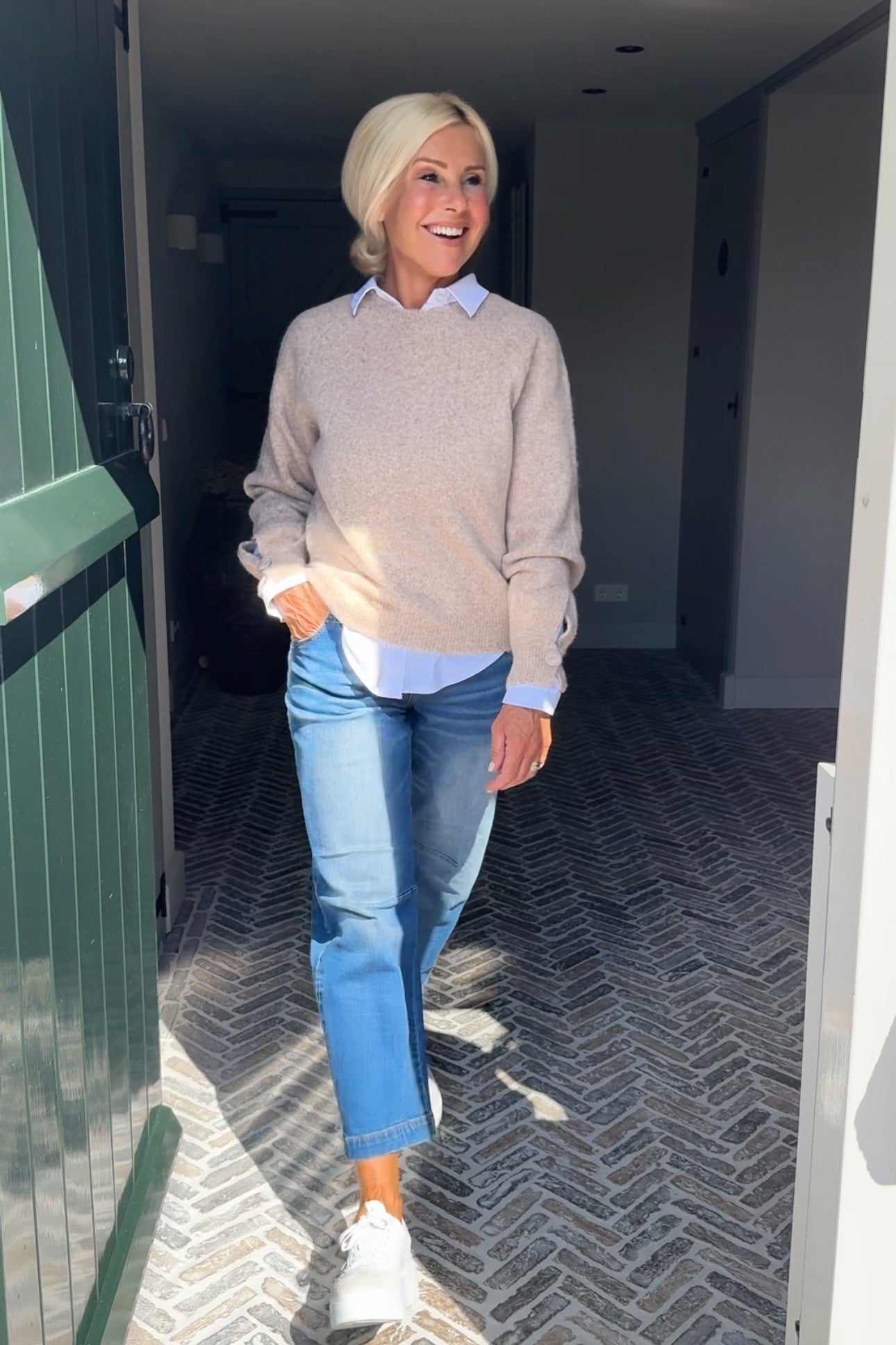 - Knoopje aan onderkant mouw