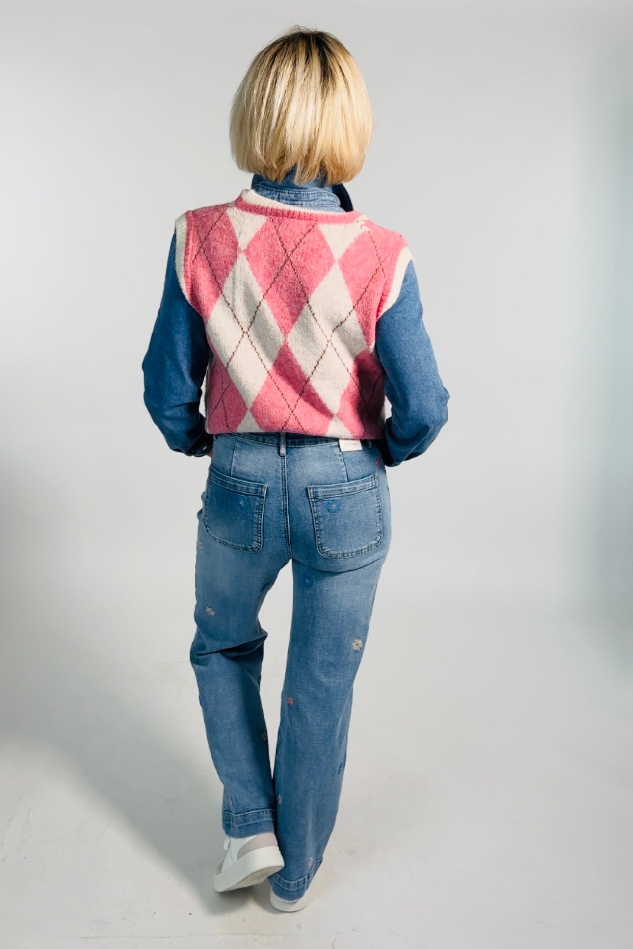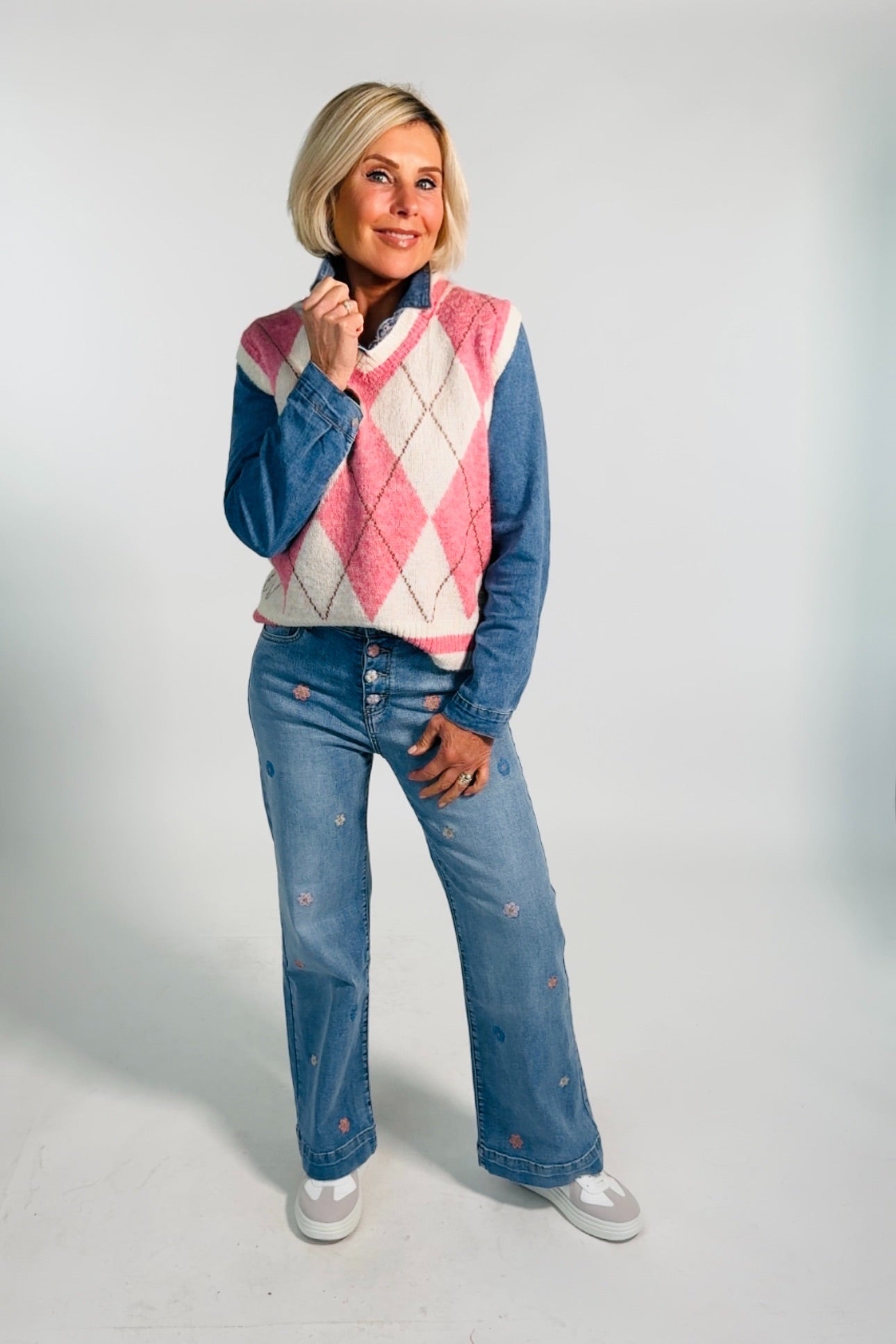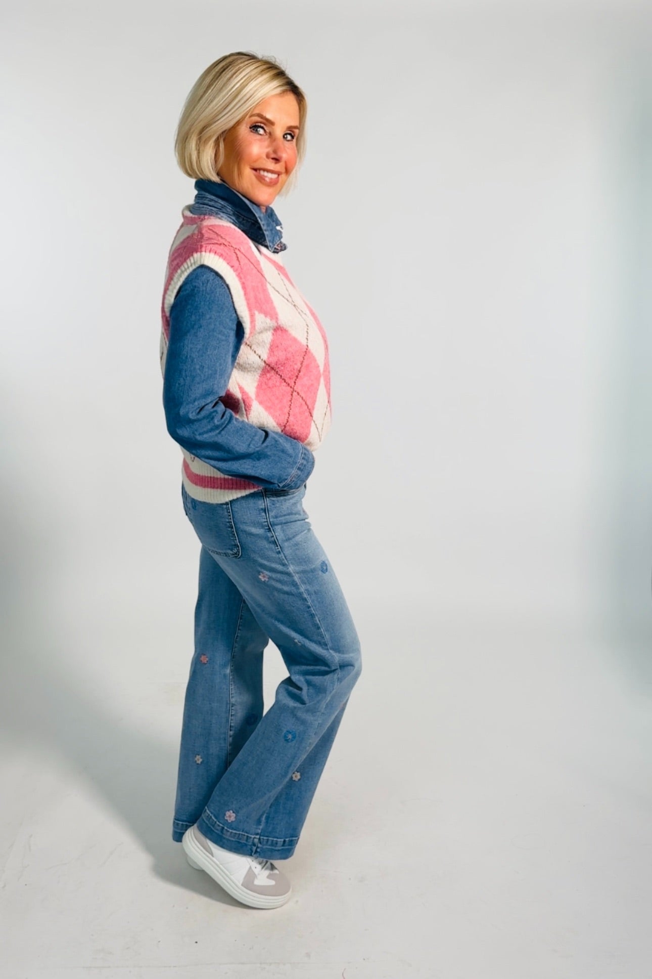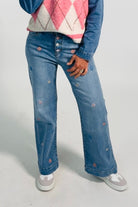- Weite Jeans mit bestickten Blümchen