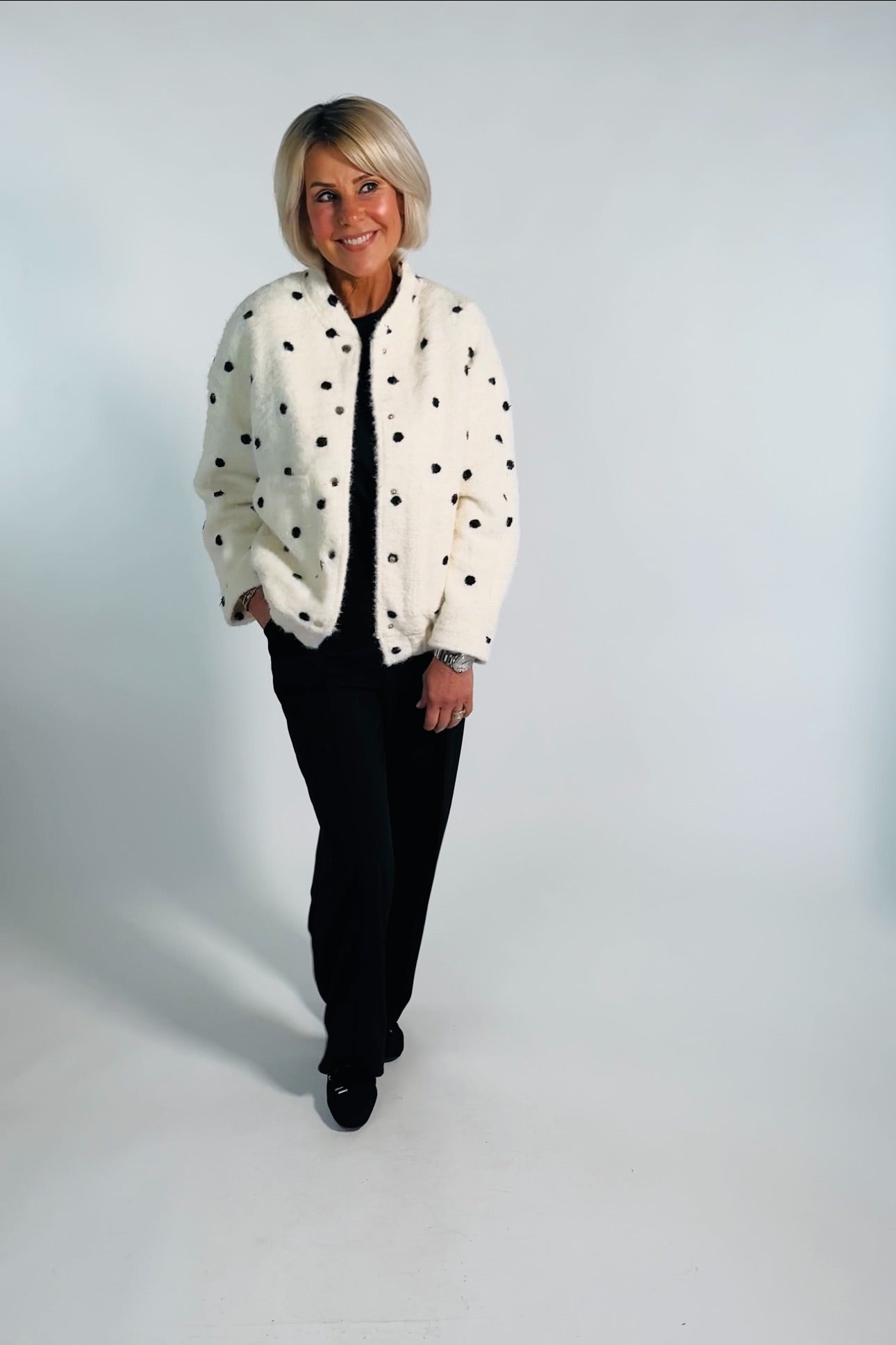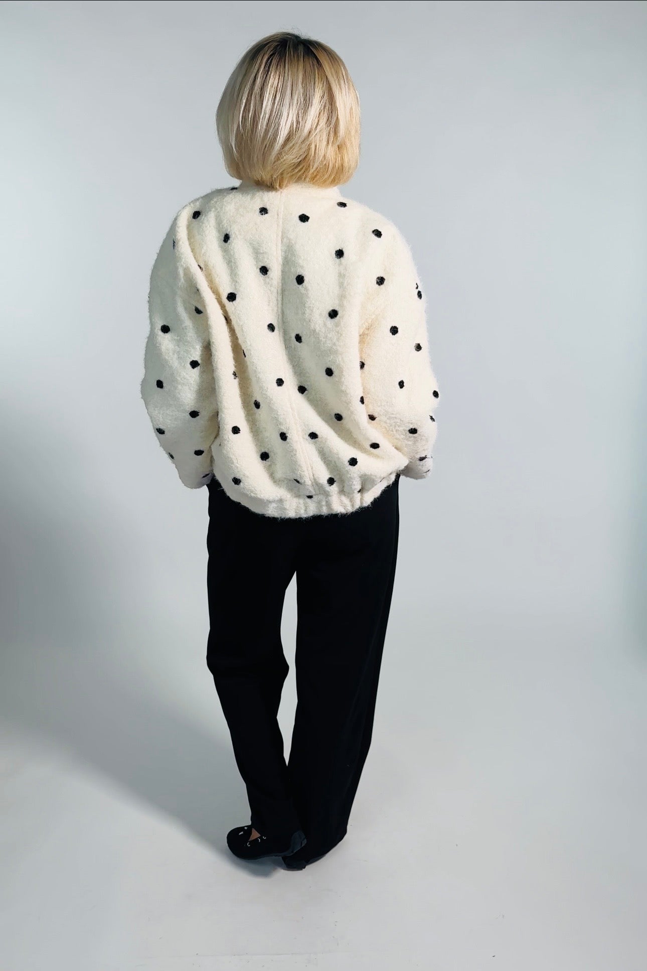 - Gestickte schwarze Punkte
