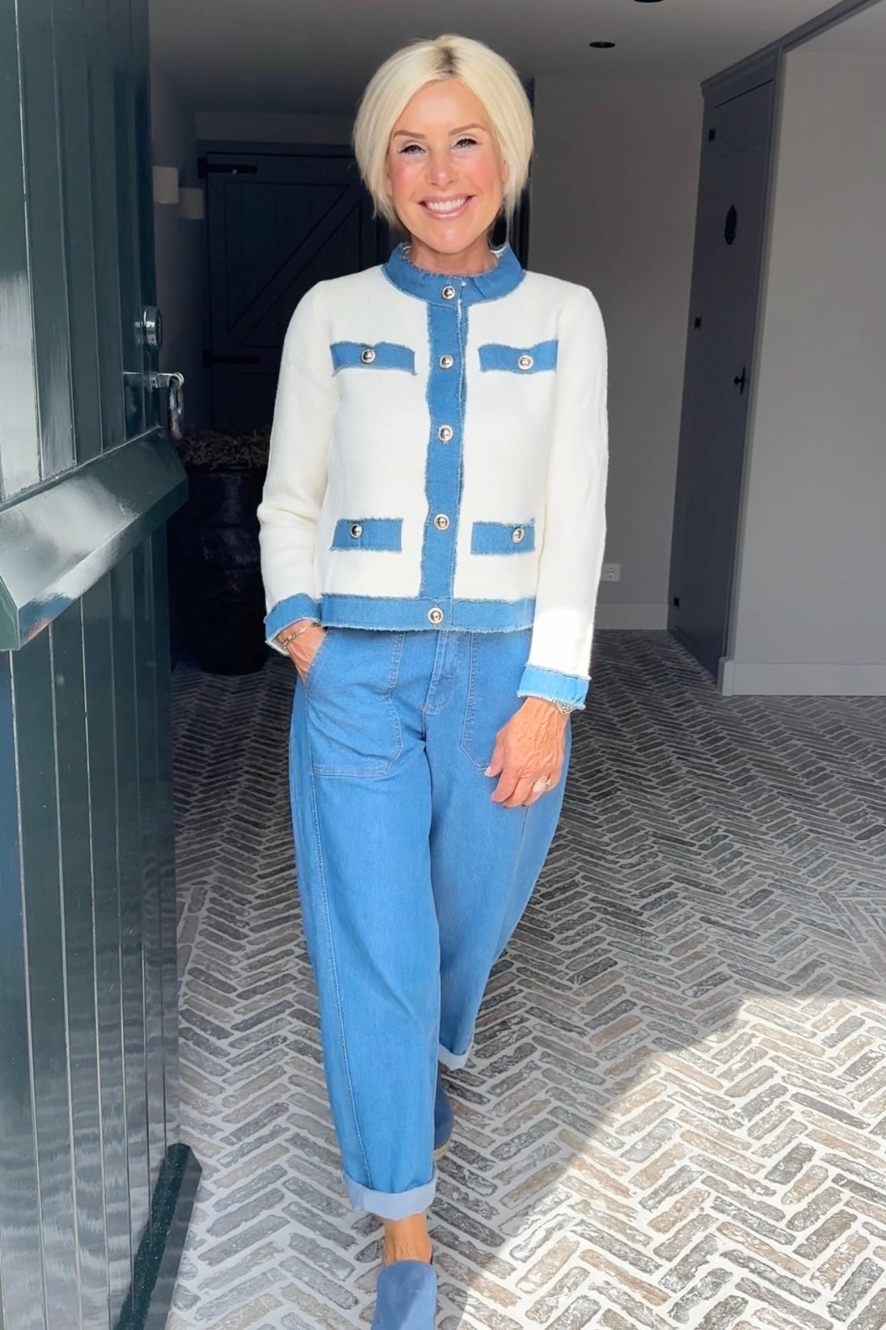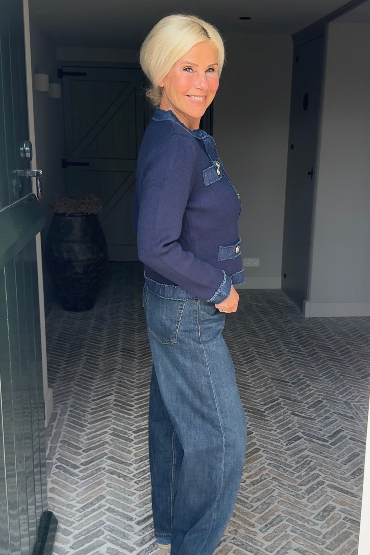 - Afgewerkt met zachte jeansstof